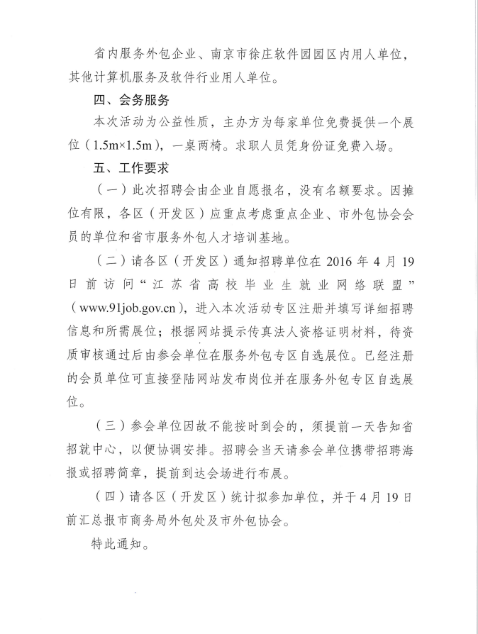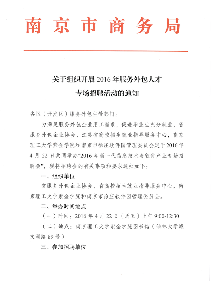 關(guān)于組織開展2016年服務(wù)外包人才專場(chǎng)招聘活動(dòng)的通知