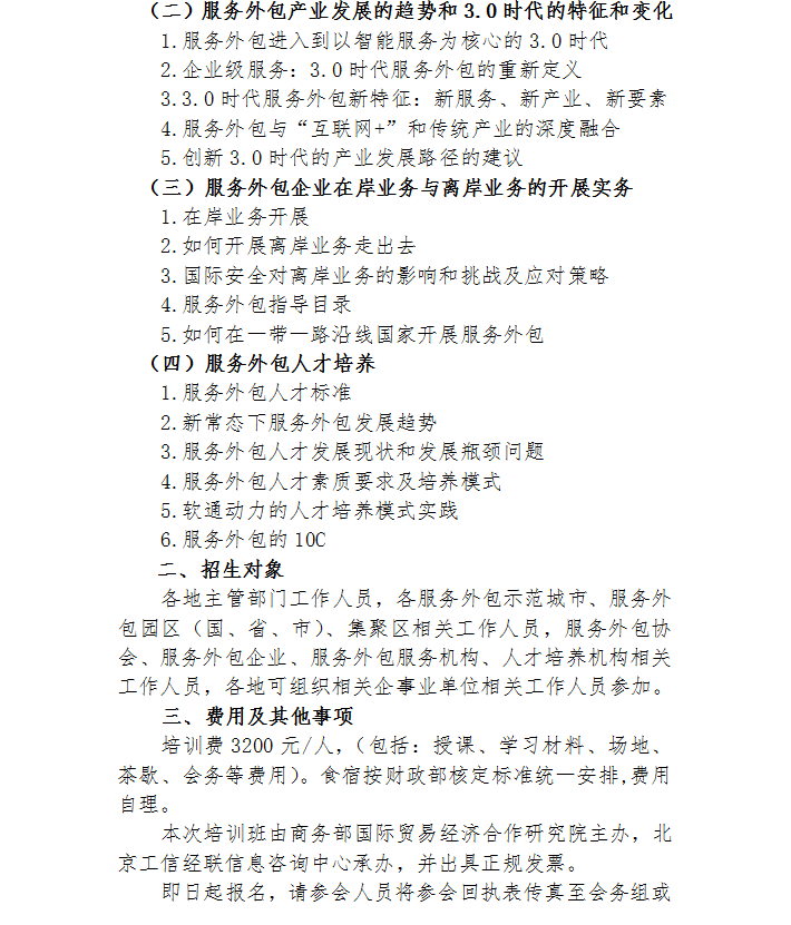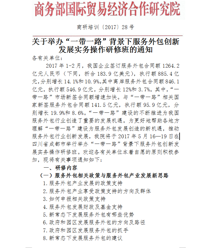 關于舉辦“一帶一路”背景下服務外包創新發展實務操作研修班的通知