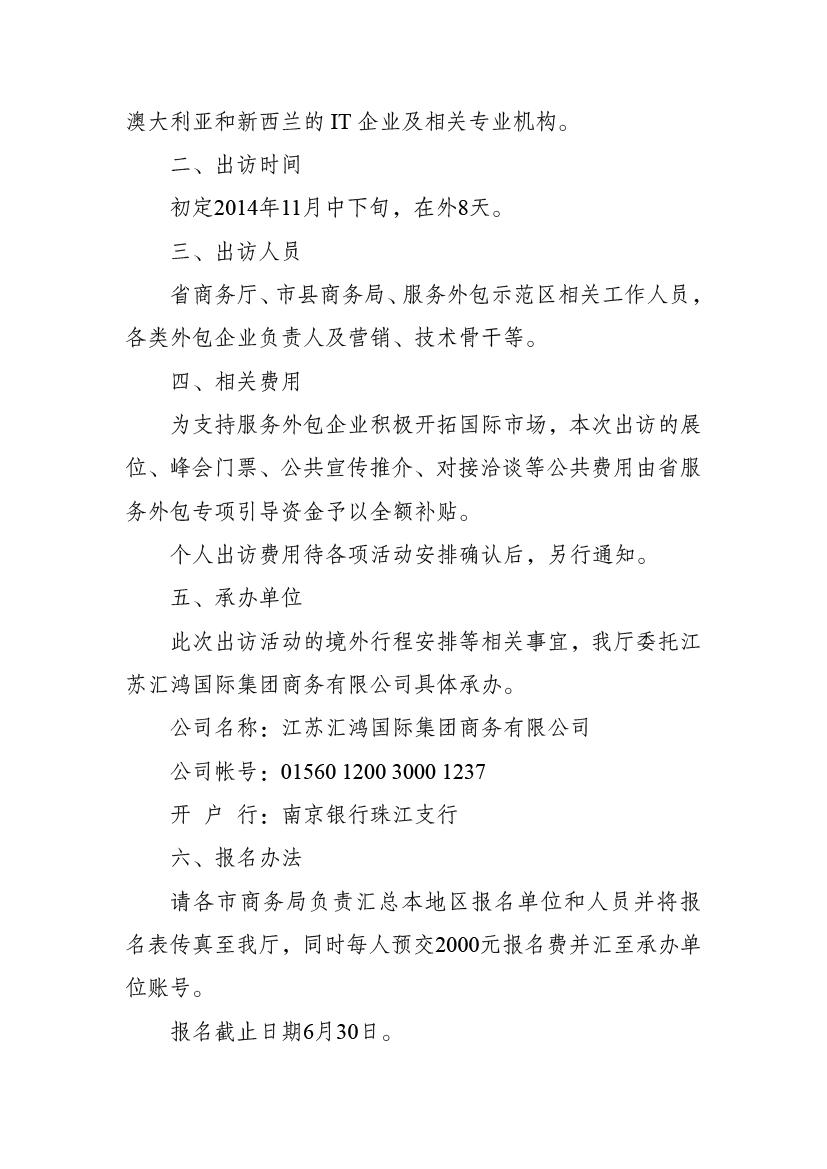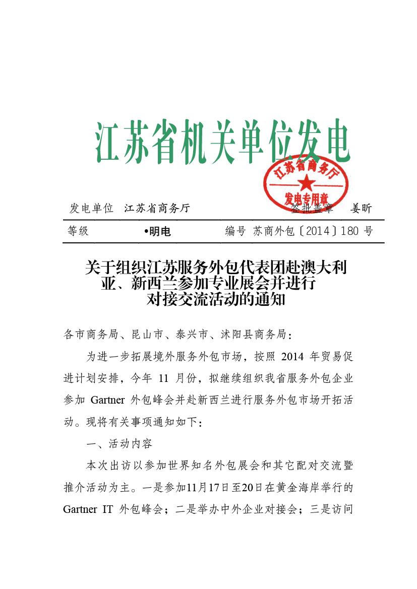 關于組織江蘇服務外包代表團赴澳大利亞、新西蘭參加專業展會并進行對接交流活動的通知