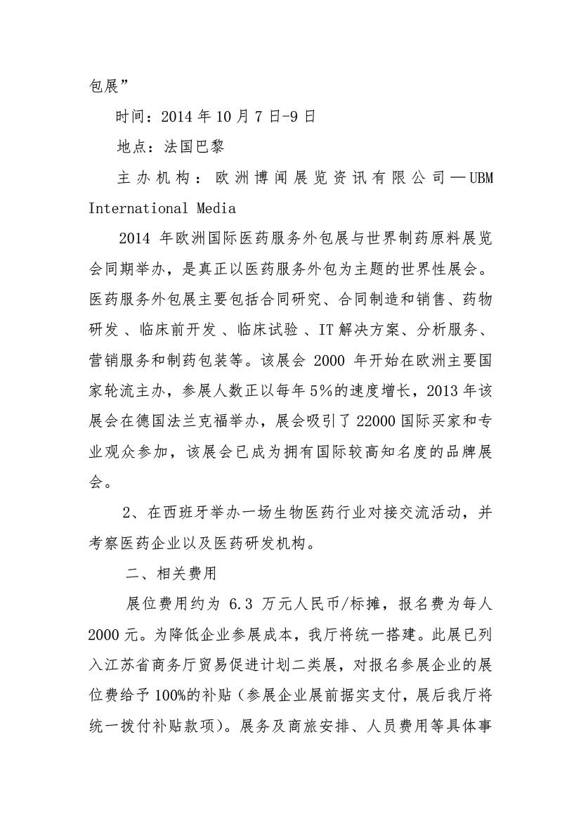 關(guān)于組團參加法國國際醫(yī)藥服務(wù)外包展并赴西班牙進行醫(yī)藥外包市場開拓活動的通知