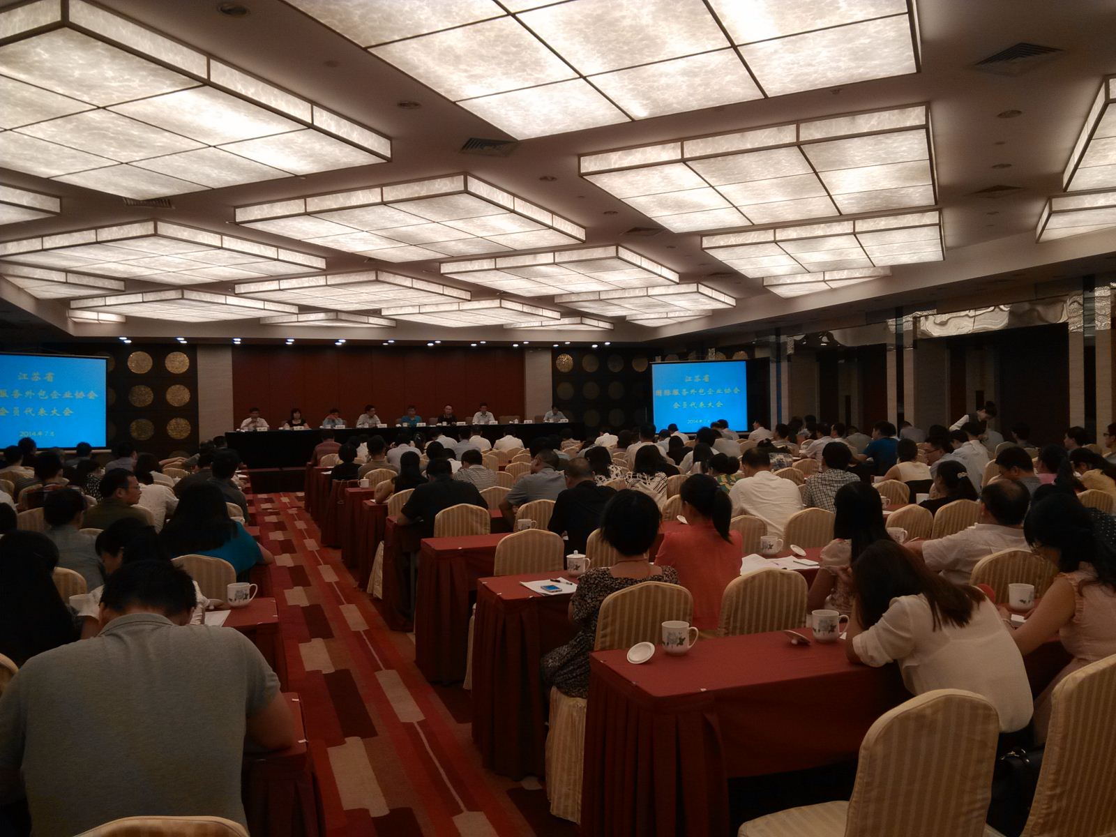 2014年7月18日南京市外包協會受邀參加江蘇省外包協會會員代表大會,在大會期間聽取了省商務廳領導對江蘇省服務外包行業發展的相關發言。